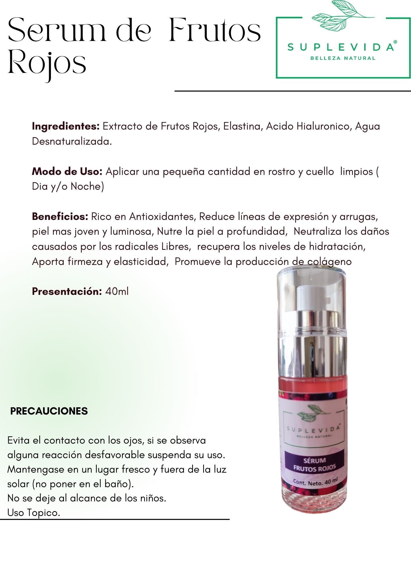 El Sérum de Frutos Rojos Suplevida es una fuente natural de antioxidantes que revitalizan y refrescan la piel.